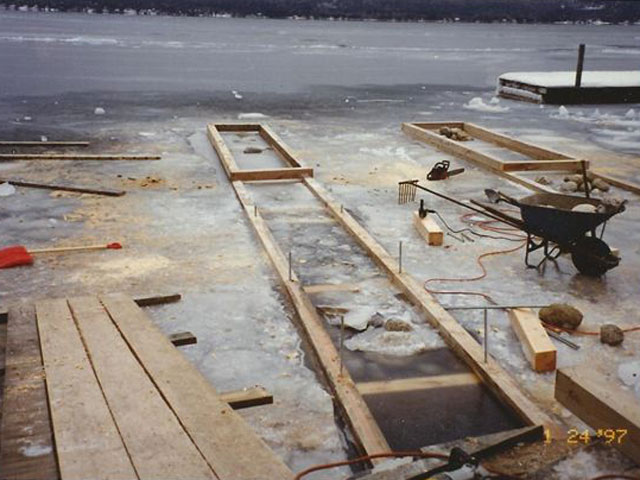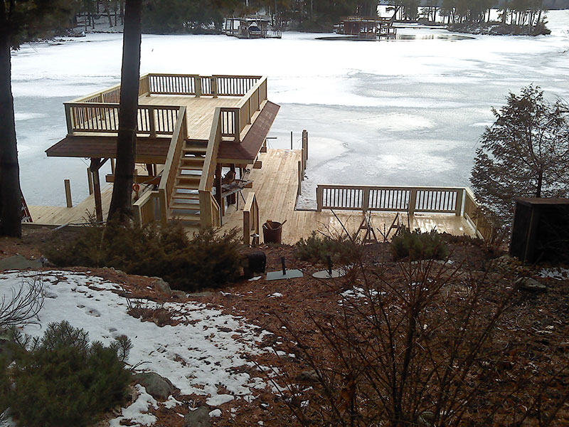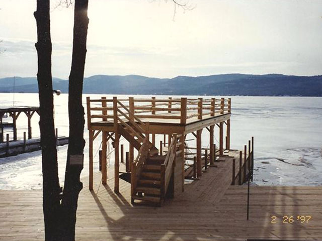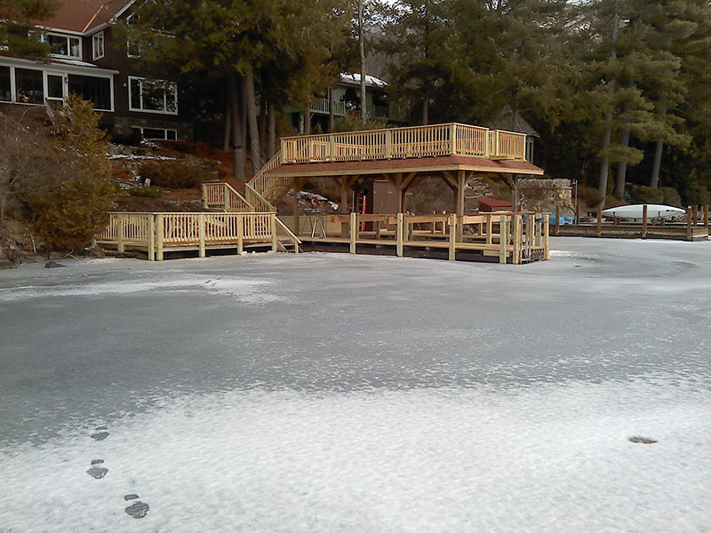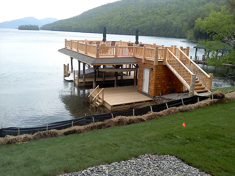 We work all year long building cribs, docks and boathouses on Lake George. We concentrate on high quality boathouse and dock building that provides superior durability to our Lake George customers. We would be happy to build your single slip dock all the way up to a custom design boathouse. We can also restore your damaged dock or remodel your old boathouse. Contact us today for a consultation and quote.